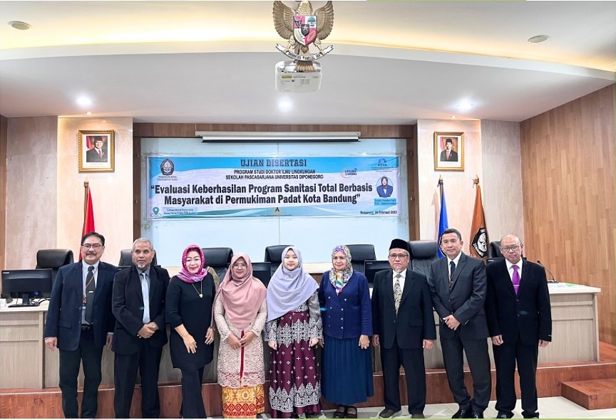 Telah berlangsung hari ini Ujian Disertasi mahasiswa Doktor Ilmu Lingkungan Sekolah Pascasarjana Undip a.n. Yenita Sandra Sari dengan judul disertasi “Evaluasi Keberhasilan Program Sanitasi Total Berbasis Masyarakat di Permukiman Padat Kota Bandung.”