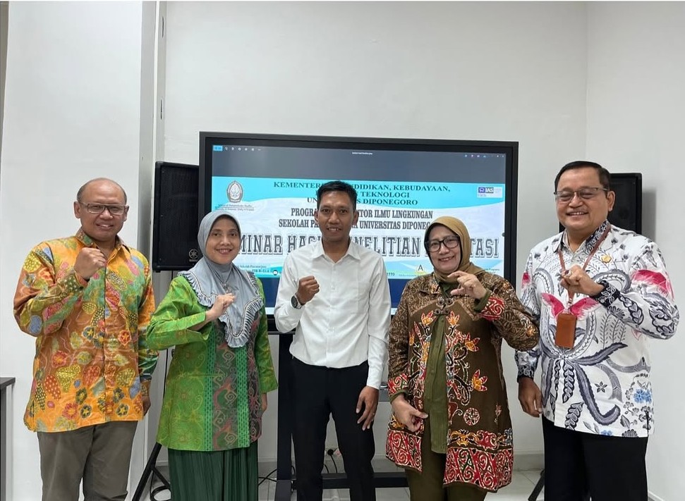 Telah berlangsung hari ini Seminar Proposal Disertasi mahasiswa Doktor Ilmu Lingkungan Sekolah Pascasarjana Undip a.n. Markus Kaban dengan judul disertasi “Model Supervisi Suportif dalam Audit Kepatuhan Pengelolaan Limbah Cair di RSPAU dr. Soehardi Hardjolukito.”