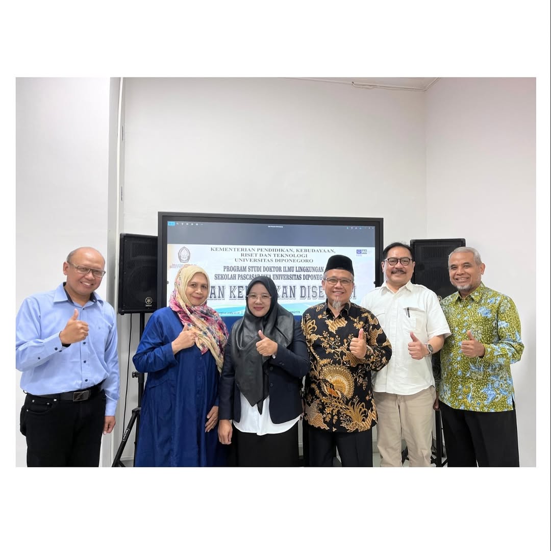 Telah berlangsung hari ini Ujian Kelayakan Disertasi mahasiswa Doktor Ilmu Lingkungan Sekolah Pascasarjana Undip a.n. Yenita Sandra Sari dengan judul disertasi “Evaluasi Keberhasilan Program Sanitasi Total Berbasis Masyarakat di Permukiman Padat Kota Bandung.”