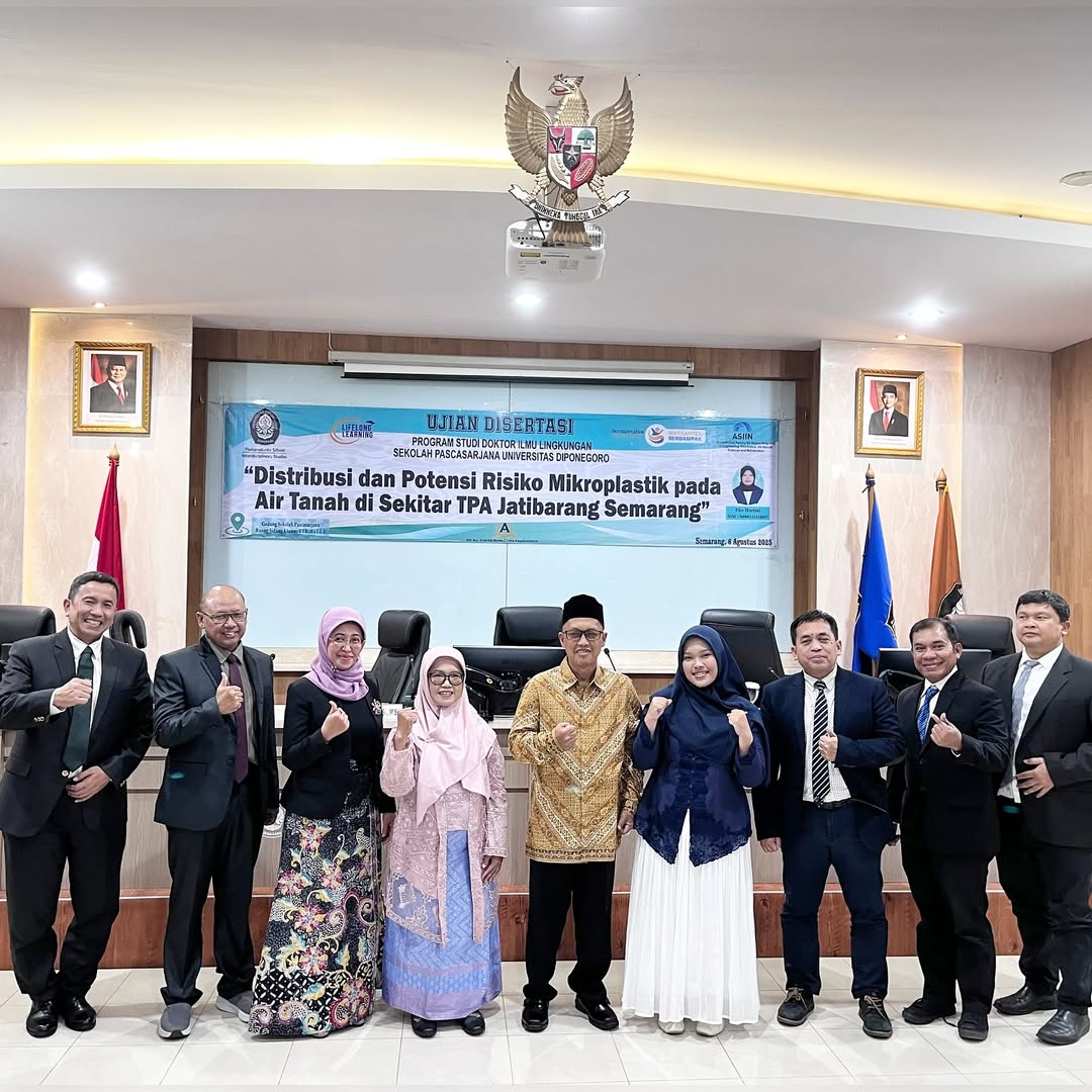 Today, Dissertation Defence of Eko Hartini is held in Doctoral Program of Environmental Science. The title of dissertation entitled “Distribusi dan Potensi Risiko Mikroplastik pada Air Tanah di Sekitar TPA Jatibarang Semarang.”