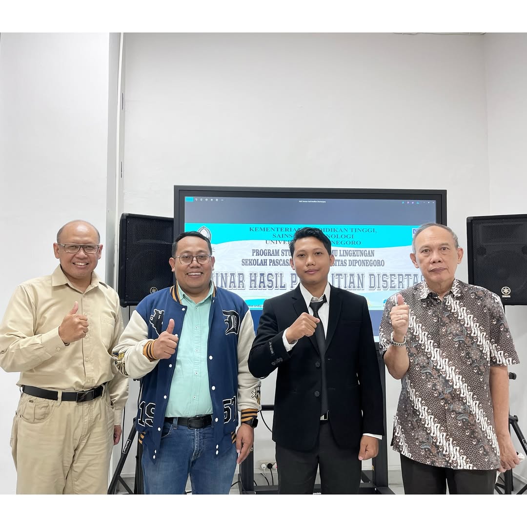 Today, Seminar of Dissertation Research Result Adib Khoirul Anas is held in Doctoral Program of Environmental Science. The title of dissertation entitled “Strategi Pengelolaan Sampah di Kawasan Pesisir Akibat Bencana Banjir Rob Kecamatan Sayung Kabupaten Demak.”