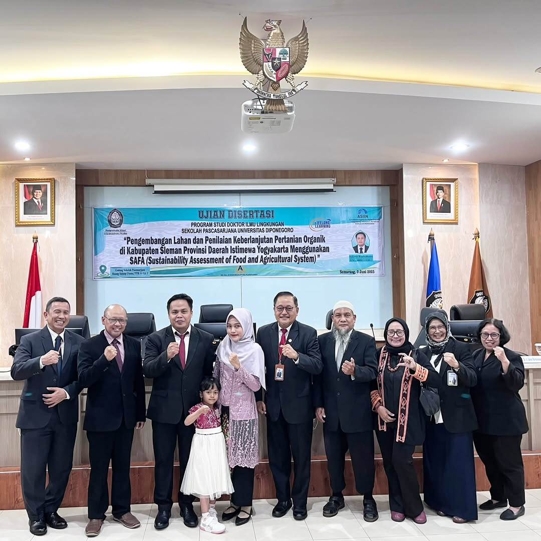 Sukron Romadhona passed the Dissertation Defence successfully with Cumlaude predicate, earning a GPA of 3.94, completing his studies in 3 years and 9 months, and became the 136th graduate of Doctoral Program of Environmental Science.