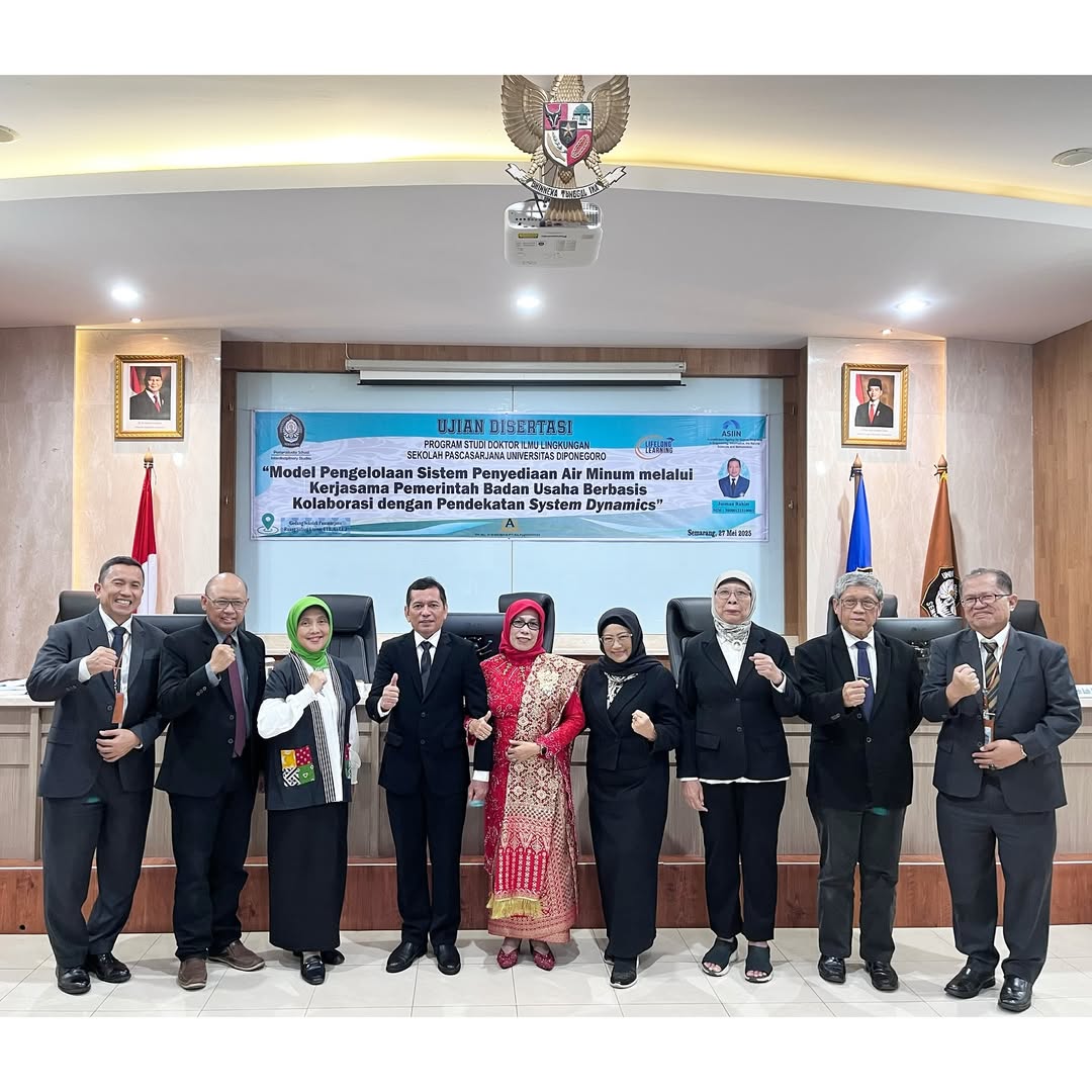 Today, Dissertation Defence of Jusman Rahim is held in Doctoral Program of Environmental Science. The title of dissertation entitled “Model Pengelolaan Sistem Penyediaan Air Minum melalui Kerjasama Pemerintah Badan Usaha Berbasis Kolaborasi dengan Pendekatan System Dynamics.”